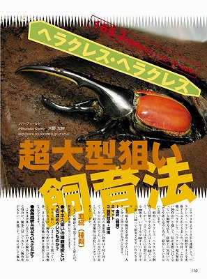 さらに、ヘラクレス・ヘラクレスの飼育ギネス記録165.3mmのブリーダーである河野光伸氏による「ヘラクレス・ヘラクレス 超大型狙い飼育法」は、150mm台後半以上のサイズに狙いを絞った飼育方法を超解説! ヘラクレス飼育に限界を感じている方は必読の内容です。