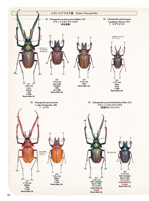 「日本人には馴染みの薄い=よくわかっていない」 であろう中南米に分布するクワガタの中でも、大型で派手なクビボソツヤ、シワバネ、コガシラ、ホソを中心として特集を組みました。巻頭図説にはこれらの種に造詣の深い馬場勝氏に解説の依頼をし、国内の出版物では初掲載となる種も含めて多数の標本を紹介しています。
