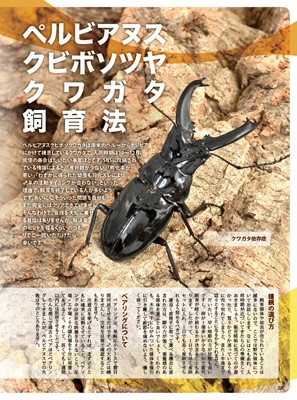 巻頭特集に関連して、『ペルー・フェイスタメルシワバネクワガタ観察記』を飯島が執筆。