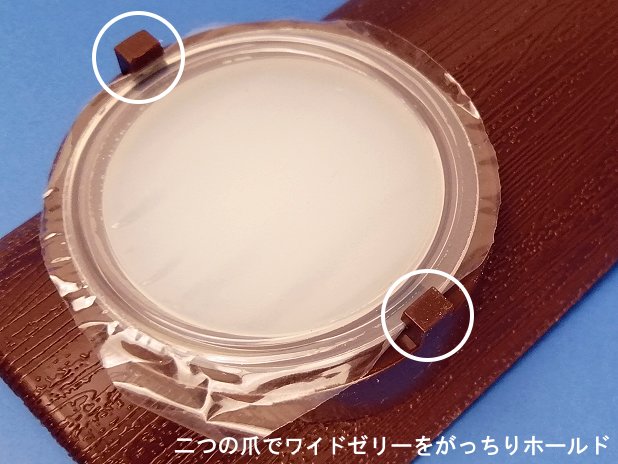 ワイドタイプのゼリーを二つの爪でホールドします。